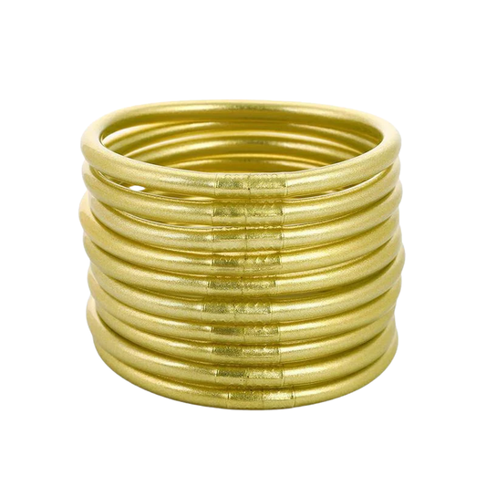JULIE Set van 10 Gouden Siliconen Armbanden – Flexibel & Waterbestendig