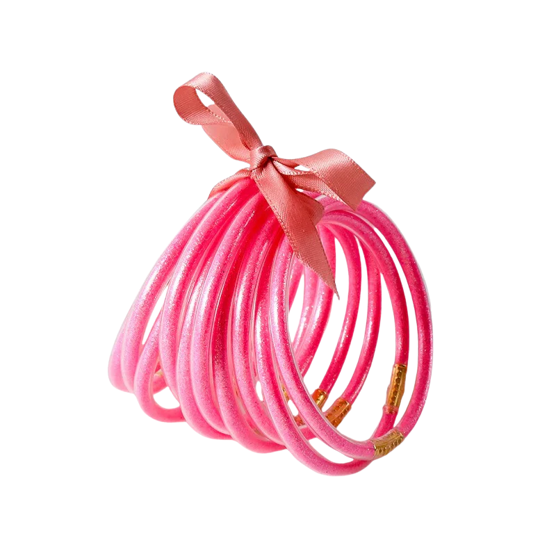 Deze set van 10 siliconen armbanden is de perfecte mix van praktisch en stijlvol. Met hun elegante gouden glans en comfortabele pasvorm zijn ze geschikt voor zowel dagelijks gebruik als feestelijke gelegenheden. Lichtgewicht, flexibel en huidvriendelijk – een must-have accessoire voor jouw sieradencollectie.