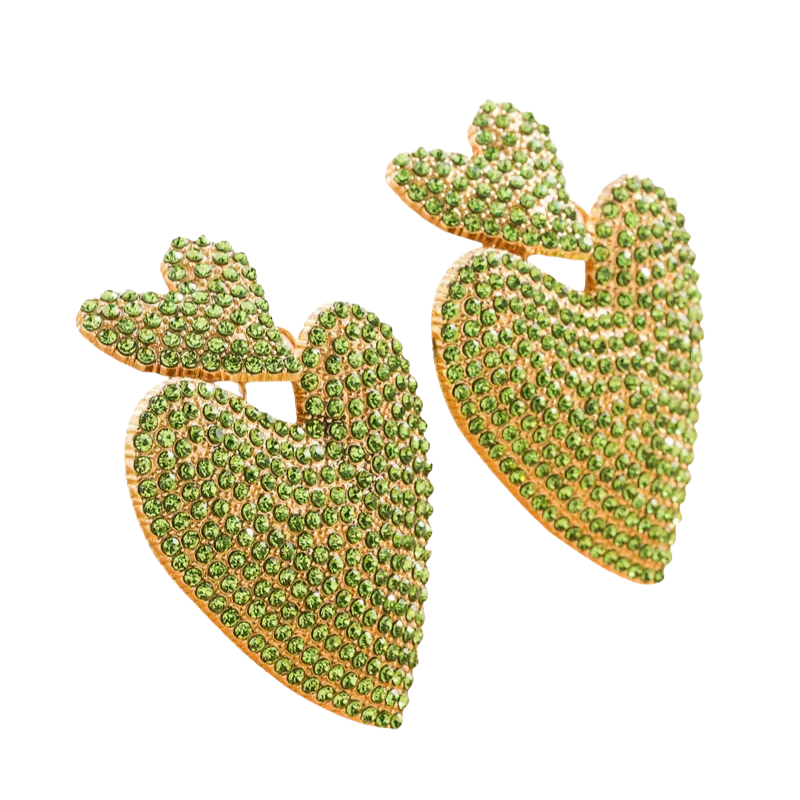 Laat je persoonlijkheid schitteren met deze opvallende oorbellen in hartvorm, volledig bezet met glinsterende strass steentjes. Verkrijgbaar in diverse kleuren zoals smaragdgroen, regenboog en kristal – voor elke mood een match!